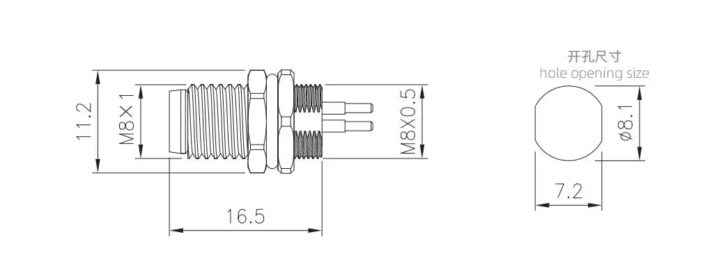 M8 남성 전면 마운트 소켓 (땜납, 나사 M8*0.5)