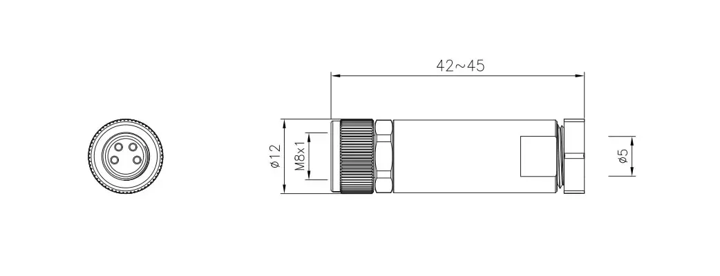 | M8 스트레이트 암 금속 조립 플러그 ( 나사 터미널 ) | M8-S3A-PLA05 | 3 핀 A- 코드 | ||