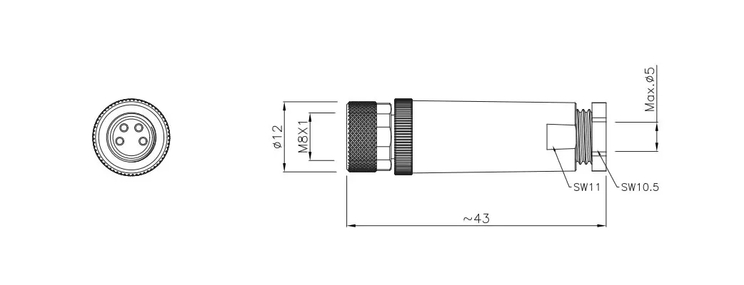 | M8 스트레이트 암 플라스틱 조립 플러그 3A 솔더 | M8-S3A-PWA05 | 3 핀 A- 코드 | ||