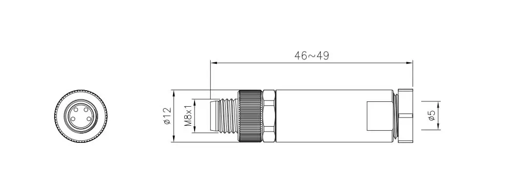 | M8 스트레이트 수컷 금속 조립 플러그 ( 나사 터미널 ) | M8-P3A-PLA05 | 3 핀 A- 코드 | ||