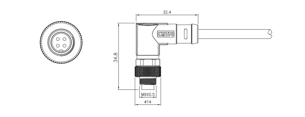 | M9 각진 수컷 과잉 모드 플러그 | M9 -P4 -MWD -XPV -S | M9-P4- MWD -XPV | 4 핀 A- 코드 | ||