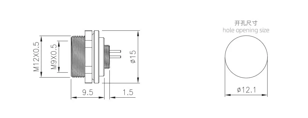 | M9 암컷 백 마운트 Socekt (PCB) | M9-S2-GPFM12 | 2 핀 A- 코드 | ||