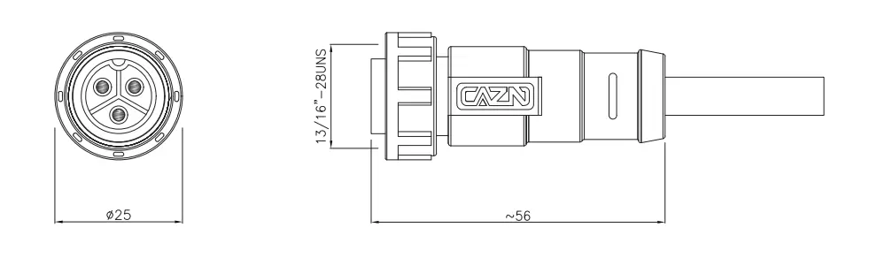 | E13 스트레이트 남성 과중 플러그 (나사산) | 300V | 20A | E13T-P3B-MWA-XPV | 3B | ||