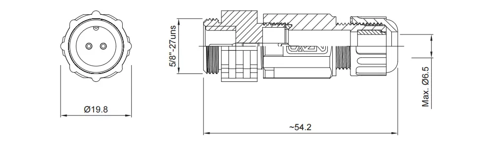 | E10 스트레이트 남성 필드 설치 가능한 결합 플러그 (스레드) | 125V | 10A | E10T-P2C-PWK06 | 2c | ||