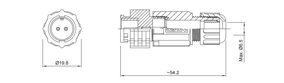 | E10 스트레이트 남성 필드 설치 가능한 결합 플러그 (Bayonet) | 125V | 10A | E10B-P2C-PWK06 | 2c | ||