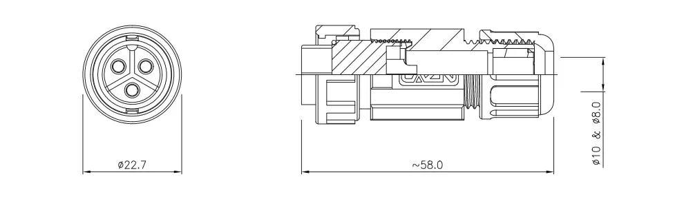 | E13 스트레이트 암 조립 플러그 ( Bayonet ) | 60V | 5a | E13B-S8-PWA08 | 8 | ||