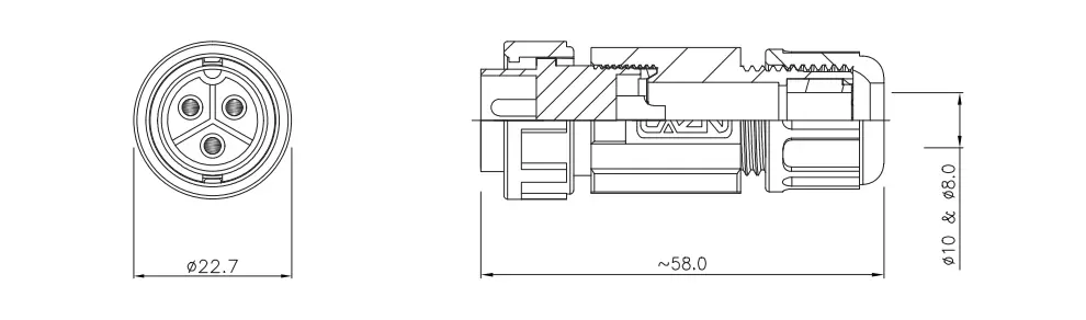 | E13 스트레이트 남성 조립 플러그 ( Bayonet ) | 60V | 5a | E13B-P7-PWA08 | 7 | ||