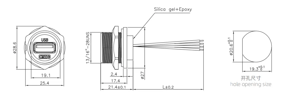 | 와이어가있는 USB 암컷 등 마운트 리셉터클 (나사산) | USB 2.0 | E13T-FU2-PWF-0.2PV | ||