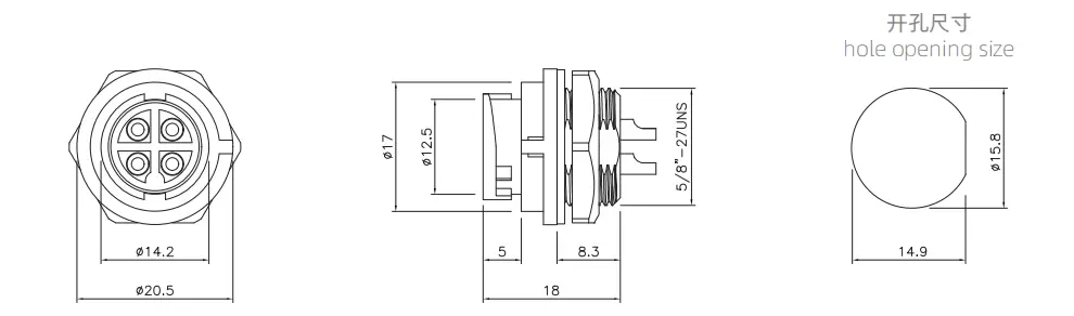 | E10 암컷 전면 마운트 솔더 리셉터클 (Bayonet) | 60V | 5a | E10B-S4-PWB | 4 | ||