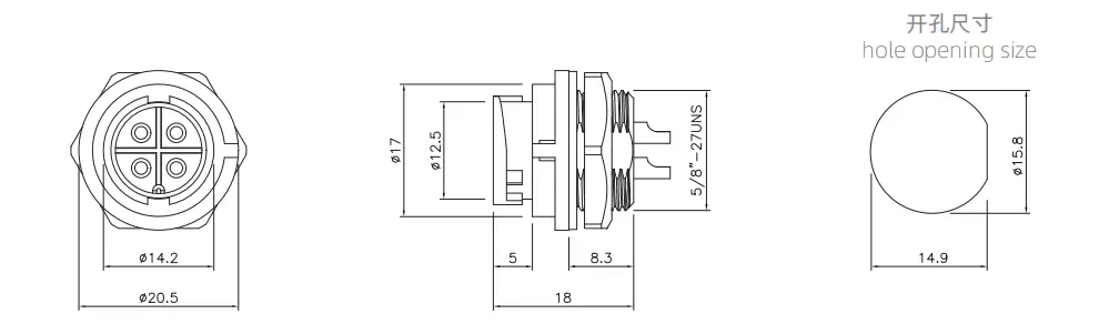 | E10 남성 전면 마운트 솔더 리셉터클 (Bayonet) | 60V | 5a | E10B-P4-PWB | 4 | ||
