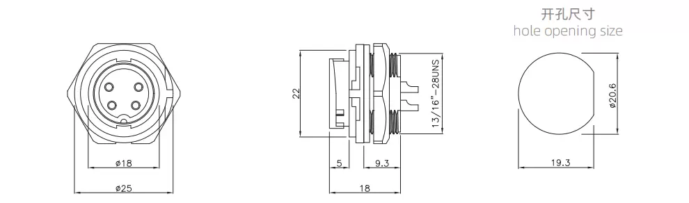 | E13 프론트 마운트 암컷 리셉터클 ( Bayonet ) | 300V | 20A | E13B-S4B-PWB | 4B | ||