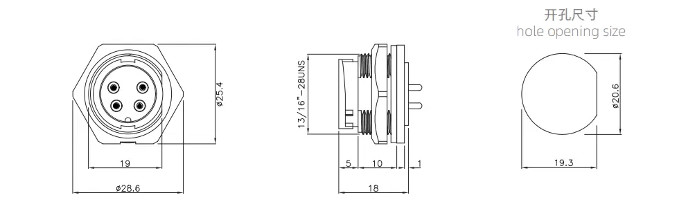 | E13 PCB 백 마운트 남성 리셉터클 ( Bayonet ) | 300V | 20A | E13B-P4B-PPF | 4B | ||