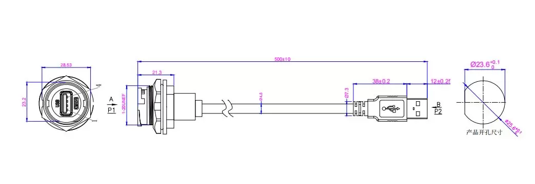 | E16 EUSB 암컷 리셉터클에서 케이블로 과도한 수컷 (Bayonet) | USB 2.0 | 0.5m | E16B-FU2-PWF/MU2-NWA-0.5PV-S | ||