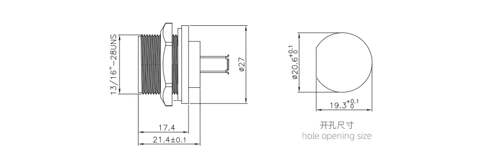 USB 여성 백 마운트 PCB 리셉터클 (스레드)
